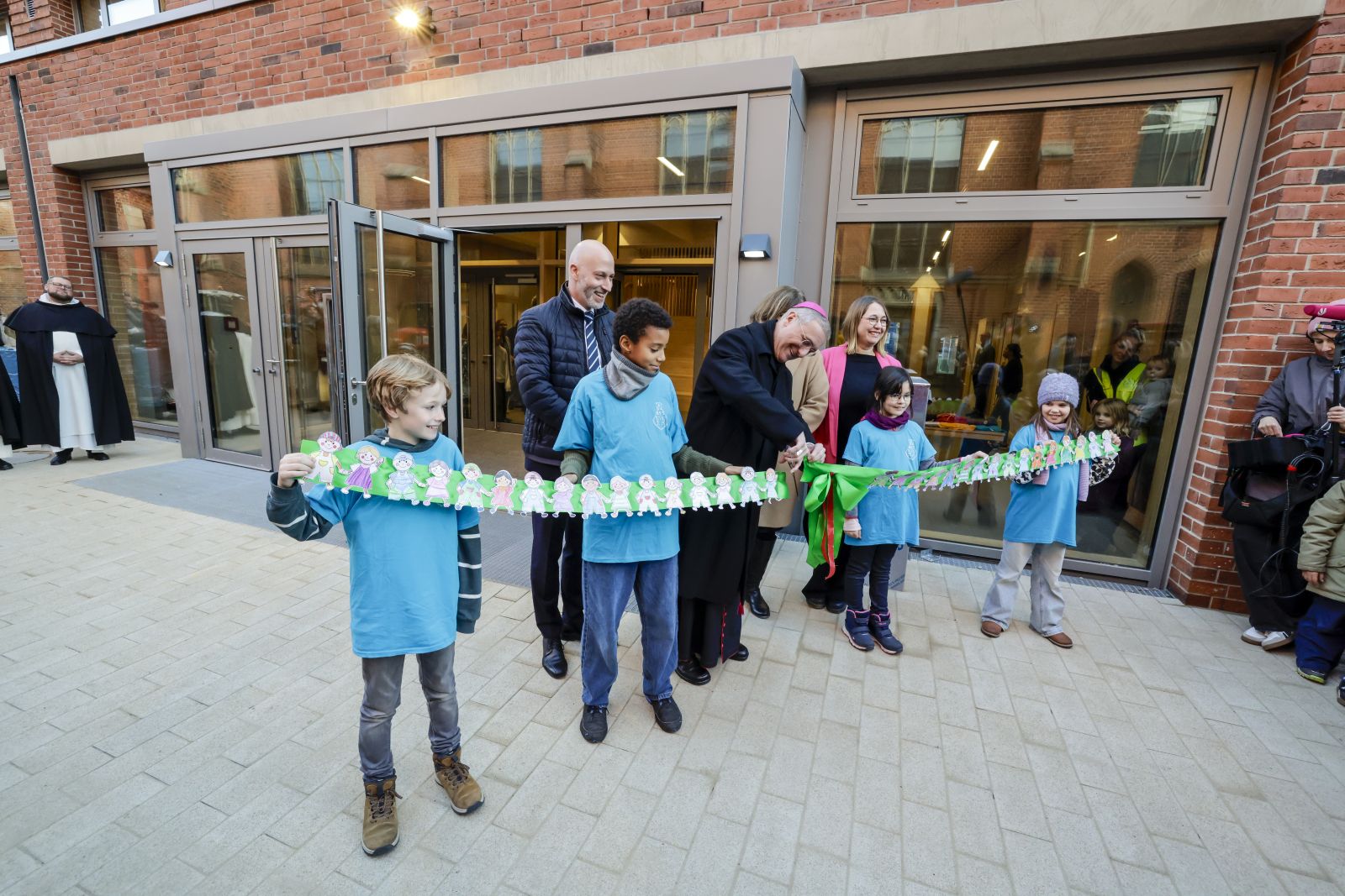 Mit der feierlichen Einweihung des neuen Sophien-Campus in Hamburg-Barmbek hat das Erzbistum Hamburg eines seiner bedeutendsten Schulbauprojekte abgeschlossen. Der lichtdurchflutete Neubau, in den das Erzbistum 25 Millionen Euro investierte, vereint die Katholische Sophienschule und die Kindertagesstätte St. Sophien auf mehr als 5.000 m² Nutzfläche – und setzt dabei neue Maßstäbe für moderne Grundschulpädagogik, Ganztagsbildung, ökologische Nachhaltigkeit und gelebtes kirchliches Miteinander. „Was wir hier verwirklicht haben, ist nicht nur ein außergewöhnlich attraktives und pädagogisch wertvolles Zukunftsprojekt. Es ist ein Ausrufezeichen für christliche Bildung in unserer Stadt“, sagte Erzbischof Heße bei der Einweihungsfeier mit mehr als 350 Gästen. Zukünftig werden in direkter Nachbarschaft zum Mesterkamp-Quartier rund 360 Kinder die Vor- und Grundschuljahrgänge besuchen.