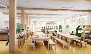 Die in das Erdgeschoss integrierte Kindertagesstätte mit zwei Krippen- und zwei Elementargruppen liegt im hinteren Bereich des Neubaus, mit eigenem Außengelände. „Wir möchten den Kindern ein Umfeld bieten, das Geborgenheit schenkt und gleichzeitig Neugierde weckt – ein Ort, an dem jedes Kind so angenommen wird, wie es ist, und sich in seinem eigenen Tempo entwickeln darf. Die hellen Räume, der multifunktionale Bewegungsraum und unser schönes Außengelände sind dafür die besten Voraussetzungen“, erklärt Thomas Kempa, Leiter der Abteilung Kindertagesstätten im Erzbistum Hamburg.