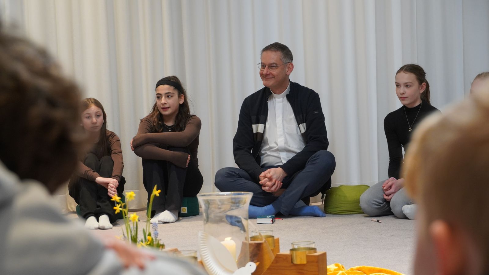 Die Offenheit der Kinder zeigt sich auch in ihren direkten Fragen: Ob er alle Geschichten der Bibel kenne („Nee“), ob er wieder Priester werden würde („Absolut“) und ob er schon den Papst getroffen habe („Den aktuellen nicht.“). Auch seine Fastenvorsätze kommen zur Sprache – weniger Schokolade. Doch wichtiger als der bloße Verzicht sei die bewusste Umgestaltung: Wer auf etwas verzichte, könne Raum für Neues schaffen, etwa für Begegnungen, so Geißler. Die Kinder nicken – der Gedanke leuchtet ein.