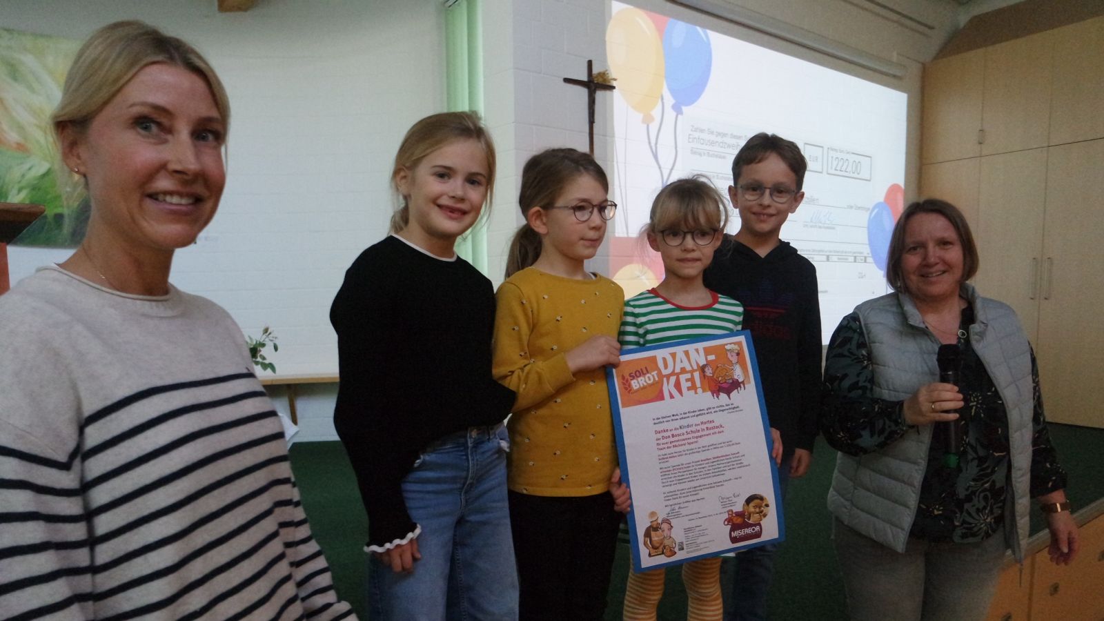 Es gab viel Applaus von den Schülerinnen und Schülern der katholischen Don-Bosco-Schule als das Ergebnis der Soli-Brot-Aktion verkündet wurde. „Wir haben 1404 Soli-Brote verkauft und können 1222 Euro an das Misereor-Projekt ‚Brasilien: Hilfe für Straßenkinder‘ überweisen“, sagte Sabrina Rohrlapper von der Bäckerei Sparre am Mittwoch in der Aula der Schule. Über einen Monat wurde das rustikale Chia-Dinkel-Brot in den Filialen der Bäckerei in Rostock und Bad Doberan verkauft. 50 Cent pro Brot gingen dabei in die Spendendose. „Wir haben noch etwas aufgerundet und freuen uns über das Ergebnis so sehr, dass wir euer Soli-Brot bald wieder anbieten werden“, sagte Rohrlapper.
