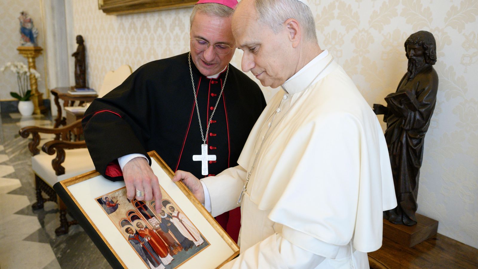 Erzbischof Heße schenke dem Heiligen Vater eine Ikone mit den Lübecker Märtyrern als Motiv aus dem Kloster Nütschau.