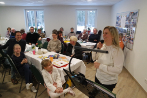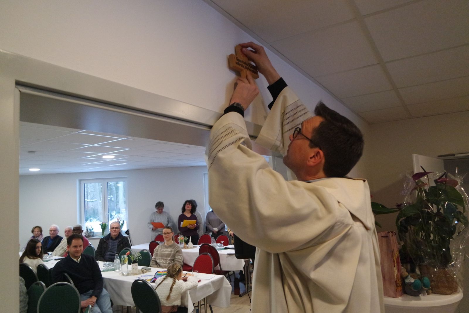 Mit einer kleinen Andacht ist das Haus gesegnet worden. Dekan Georg Bergner hatte dafür Weihwasser und Weihrauch dabei. Über der Eingangstür zum Saal wurde als Zeichen für Gottes Segen ein Kreuz angebracht. So einen Ort behalte man oft ein ganzes Leben in guter Erinnerung – die erste Jugendfreizeit oder Klassenfahrt, sagte Bergner. „Deshalb ist es auch so wichtig, in solch einen Ort zu investieren“. Es sei gut solche Orte für Kinder und Jugendliche zu haben.