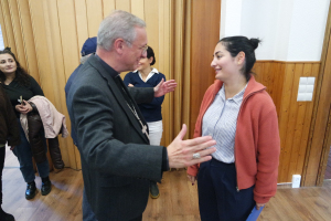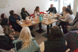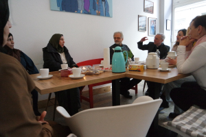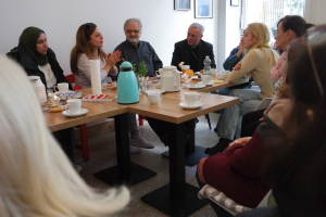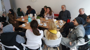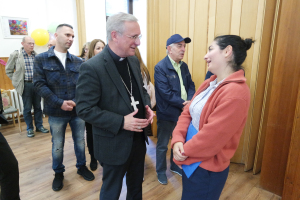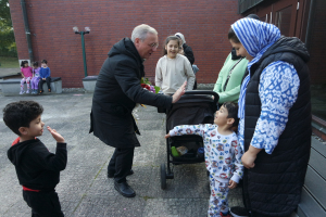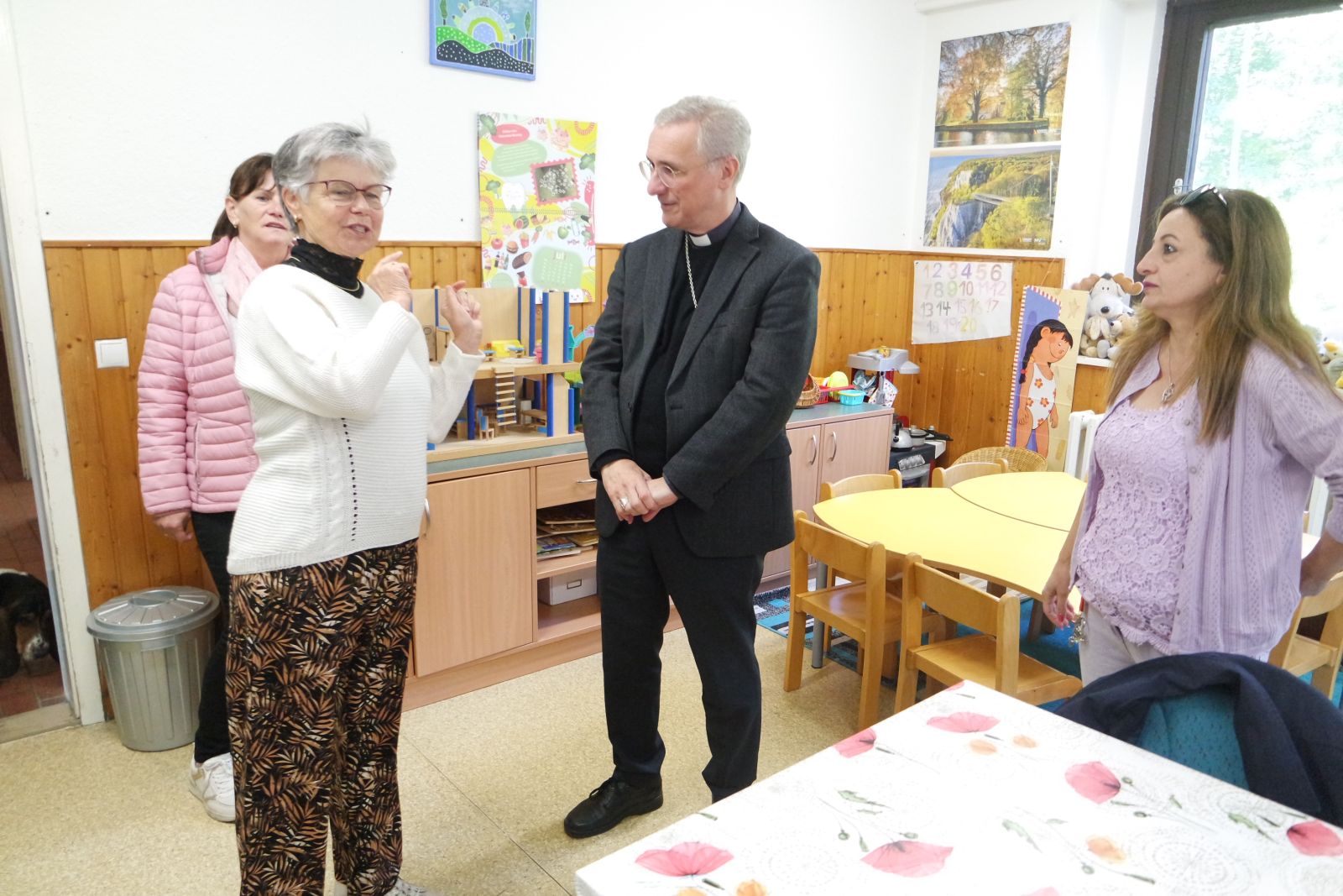 Im Familiencafé Mama Chocolate traf Erzbischof Heße mit Frauen aus Syrien, der Ukraine und dem Irak zusammen. Das interkulturelle Begegnungscafé für geflüchtete Frauen war erst im September mit dem Integrationspreis des Landes ausgezeichnet worden. Heße würdigte die „gelebte Nächstenliebe“ und dankte allen Engagierten, die den Geflüchteten durch ihren Einsatz Kraft und eine neue Perspektive schenken. „Diese Orte der Begegnung, des Miteinanders und der Solidarität sind entscheidend, um Geflüchteten Orientierung und Teilhabe zu ermöglichen und gleichzeitig gegenseitiges Verständnis und Vertrauen zu schaffen“, betonte er.