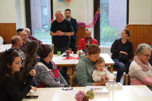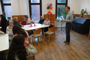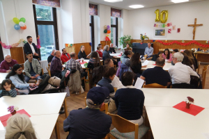 Das Projekt „Spielend Deutsch lernen“ entstand, weil es damals einen Mangel an Kita-Plätzen gab. Ehrenamtlich Engagierte, die vor allem aus dem pädagogischen Bereich kamen und bereits in Rente waren, schafften eine vierstündige Betreuung für Kinder an Werktagen mit Spielen und einfachen deutschen Sprachlerninhalten. „Die Kinder, die hier waren, haben ein gute Vorbereitung auf die Schule bekommen, weil wirklich spielend Deutsch gelernt haben“, sagt Matthias Bender, der das Projekt gemeindlich betreut hat. Mit Geldern aus dem Flüchtlingsfonds des Erzbistums konnte das Projekt ins Leben gerufen werden. Heute organisiert die Caritas das Projekt mit kirchlichen Geldern und Bundesmitteln.