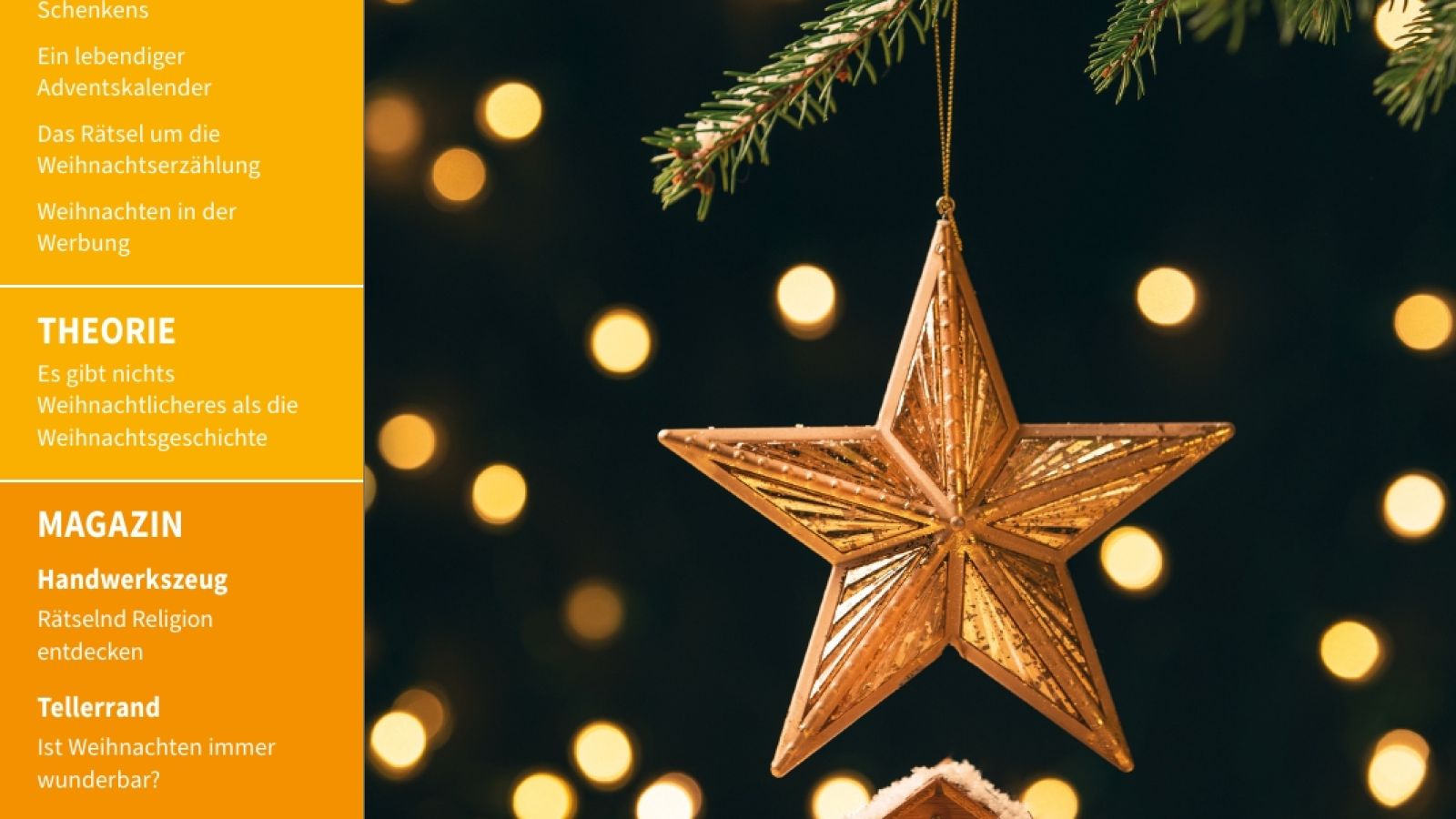 Weihnachten - worum geht's da eigentlich? Hannover: Friedrich, 2025. - 63 S.: Ill., 1 Begleitheft A5, Materialheft (Religion 5 bis 10 ; 60) Schlagwörter: Weihnachten; Weihnachtsgeschichte; Bilderbuch; Bibel; Weihnachtsbrauchtum; Ritual; Brauchtum; Konfessionell-kooperativer Religionsunterricht; Tradition; evangelisch; evangelisch - katholisch; Kirche; Schenken; Advent; Adventskalender; Werbung; Konsum; Konsumgesellschaft; Mystery-Methode Ordner: Kirchenjahr - Weihnachten - Sek.I Themen des Heftes: Klasse 5/6: "Wann fängt Weihnachten an?" - Mit einem (Klassen-)Bilderbuch dem Thema auf der Spur / "Wie feiert ihr Weihnachten?" - Ein konfessionell-kooperativer Blick auf Rituale und Bräuche --- Klasse 7/8: "Morgen, Kinder, wird's was geben!?" - Die Bedeutung des Schenkens in einer säkularisierten Welt --- Klasse 8-10: "Noch 24 Tage bis Weihnachten" - Einen lebendigen Adventskalender an der Schule gestalten --- Klasse 9/10: "Was ist Weihnachten eigentlich wirklich passiert?" - Mit der Mystery-Methode dem Rätsel von Weihnachten auf der Spur / "Weihnachten ist eine Riesenchance" - Eine kritische Auseinandersetzung mit Werbung zur Weihnachtszeit
