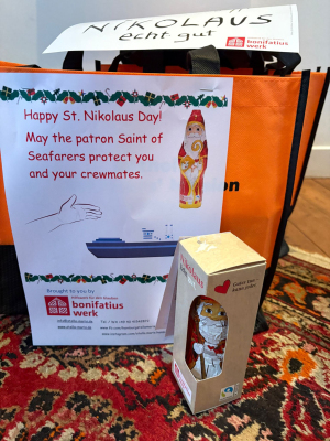 Das hat sich die Seemannsmission Stella Maris zu Herzen genommen und 200 Seeleuten mit einem gesponserten Schokonikolaus Danke gesagt und die Nikoläuse über das Meer geschickt. Aber ob sie noch in Rotterdam oder New Orleans ankommen oder verspeist werden, ist unklar. Es bleibt die Erinnerung an den Schutzpatron der Seeleute und die Gewissheit, dass die Seeleute nicht vergessen sind.