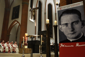 Um 17:00 Uhr begannd das Gedenken mit einer Andacht mit Kranzniederlegung am Zeughaus, Parade 12. Der Vorsitzende der Possehl-Stiftung, Prof. Dr. Wolfgang Sandberger, sprach ein Grußwort. Es folgte das Pontifikalamt zur Todesstunde der Lübecker Märtyrer in der Propsteikirche Herz Jesu, Parade 4. Die Liturgie leitete Erzbischof Stefan Heße, Domkapitular Hermann Wieh hielt die Predigt. Die Musik im Gottesdienst gestaltete der Propsteichor unter der Leitung von Heiner Arden. Anschließend waren alle zum Beisammensein im Haus der Begegnung eingeladen.