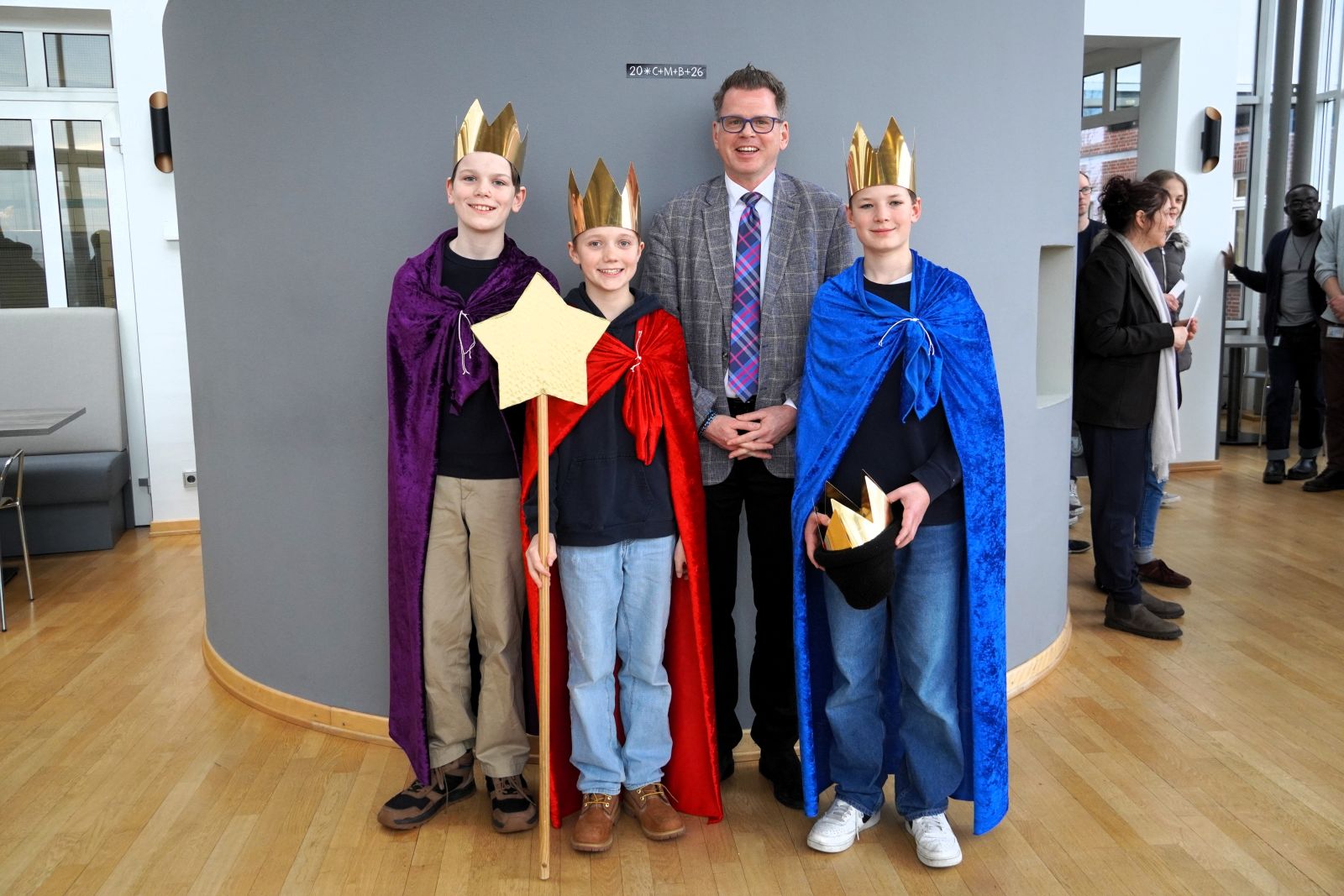 Am Donnerstag, 15. Januar, waren die drei Sternsinger David, Maximilian und Jonathan aus der Sophie-Barat-Schule zu Gast beim Bundesamt für Seeschifffahrt und Hydrographie (BSH) in der Bernhard-Nocht-Straße auf St. Pauli. Auf Einladung von Präsident Helge Heegewaldt versammelten sich zahlreiche Mitarbeiterinnen und Mitarbeiter in der Kantine, um den Segen der Heiligen Drei Könige entgegenzunehmen. Zugleich bekamen die Siebtklässler mit ihrer Lehrerin Kerstin Panamthottathil einen spanenden Einblick in die Arbeit des Bundesamtes.