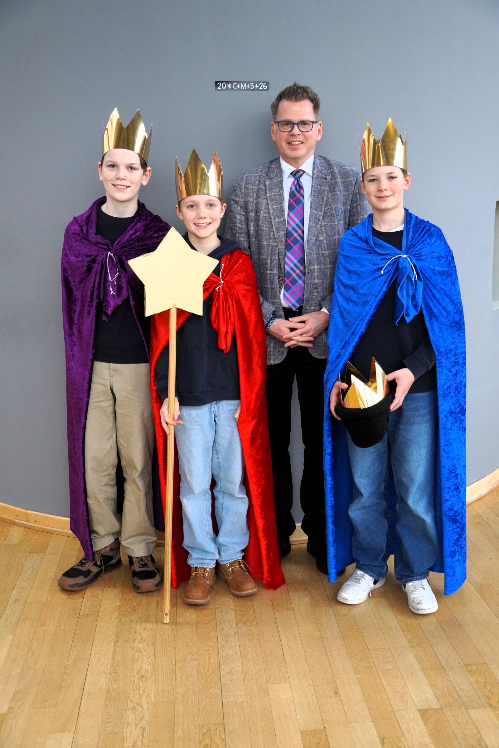 Am ersten Montag im neuen Jahr (5. Januar) haben knapp 100 Sternsingerinnen und Sternsinger aus ganz Schleswig-Holstein den Landtag besucht. Sie brachten dem Landeshaus den traditionellen Segen ,,Christus mansionem benedicat Christus segne dieses Haus" in Form des Kreidezeichens 20*C+M+B+26 und sammelten Spenden für notleidende Kinder weltweit. Landtagspräsidentin Kristina Herbst und Ministerpräsident Daniel Günther nahmen die Mädchen und Jungen gemeinsam am Landeshaus in Empfang.