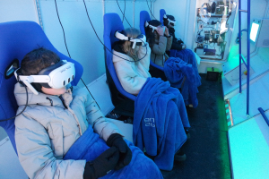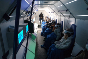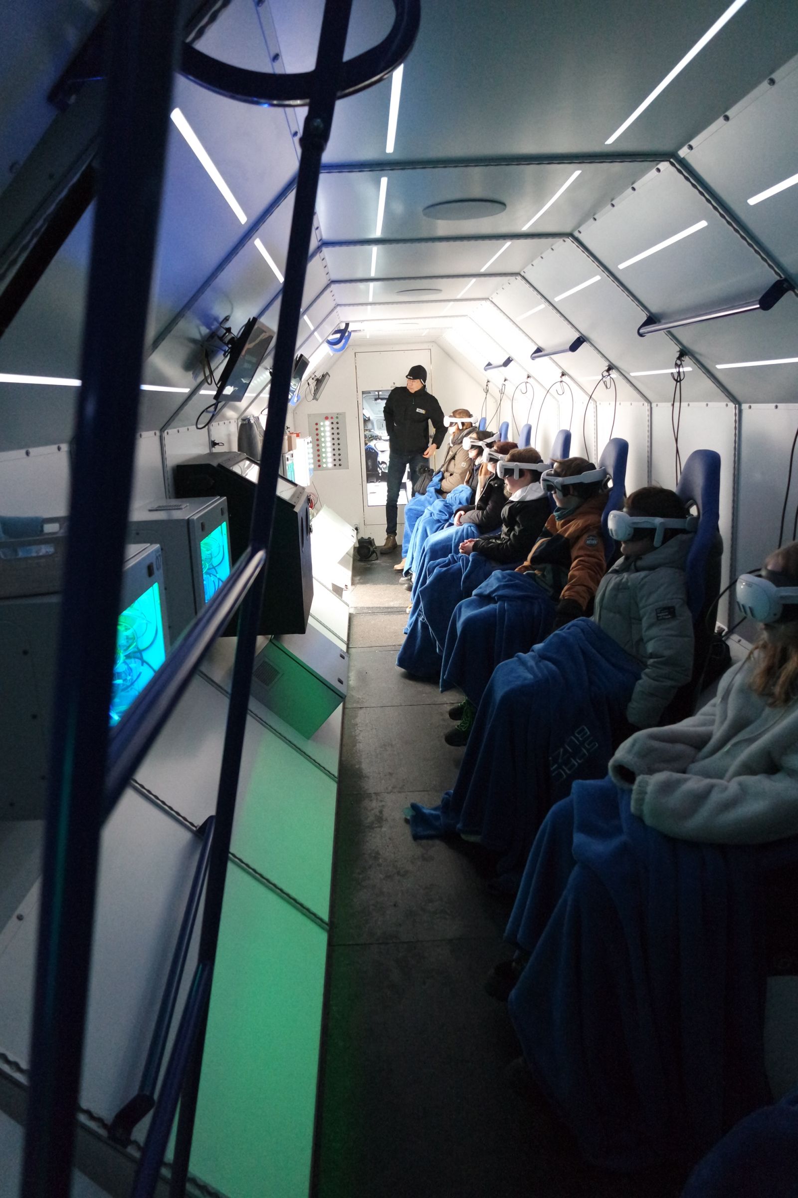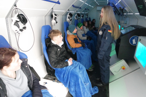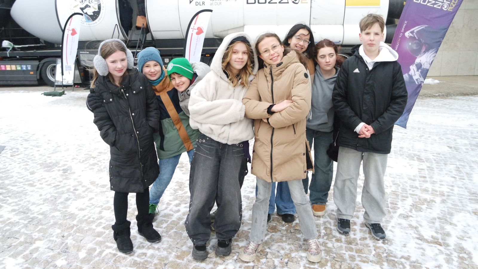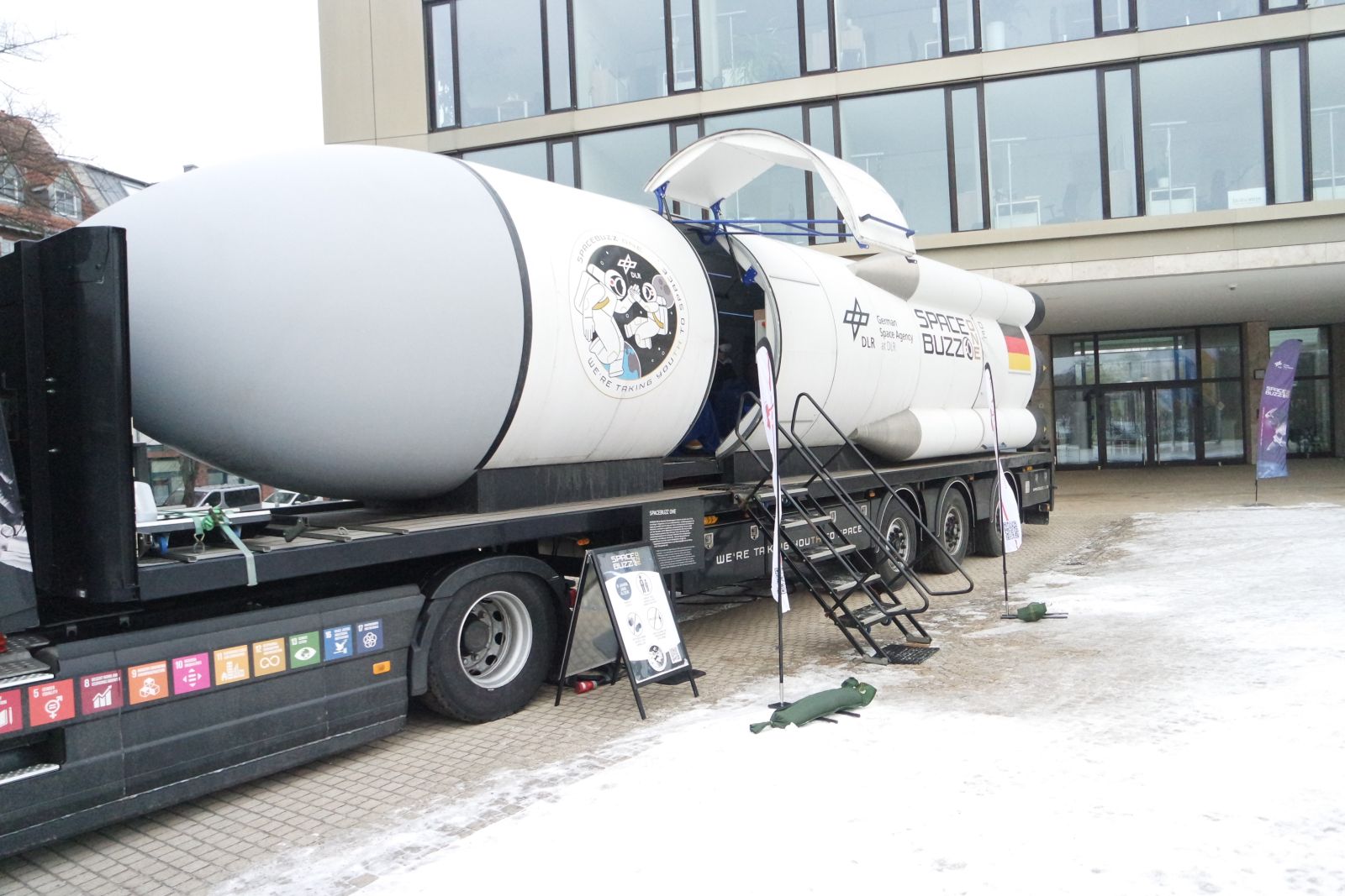 Scharfer kalter Wind und Temperaturen von weit unter Null Grad – das Wetter in Schwerin passte für ein Weltraumabenteuer. Die Schülerinnen und Schüler der Niels-Stensen-Schule in Schwerin haben einen virtuellen Flug ins Weltall gewonnen. Im Spacebizz One der Deutschen Raumfahrtagentur konnten 140 von ihnen dabei sein. Wichtig ist der Raumfahrtagentur bei diesem Bildungsangebot für Schulen ein Perspektivwechsel, um die Veränderungen durch Klimawandel oder Abholzung der Regenwälder zu verstehen. Aus dem Weltall ist zu sehen, wie Gletscher schmelzen, wie Flüsse und Seen austrocknen und der Regenwald riesigen Plantagen weichen muss.
